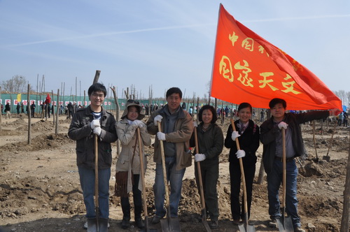 4月2日,国家天文台副台长、党委副书记郑晓年,台综合办公室主任陆烨带领机关党支部入党积极分子组成6人的植树队伍,参加了由院绿化办组织的义务植树活动。