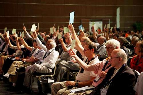 大会闭幕会上参会者的投票表决