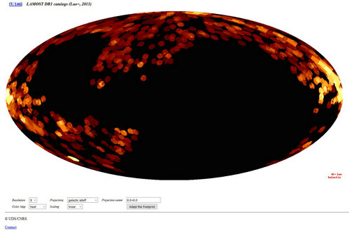 VizieR系统自动为LAMOST DR1生成的巡天数据覆盖图