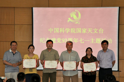 七一前夕,国家天文台组织全台党员开展了纪念建党93周年七一主题活动。活动以回顾党史、表彰先进、入党宣誓等形式展开,全台党员150多人参加了此次活动。活动由党政综合办主任陆烨主持。