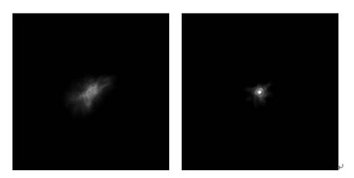 经过Ex-AO校正前后的恒星“北落师门”图像:校正前(左)和校正后(右)