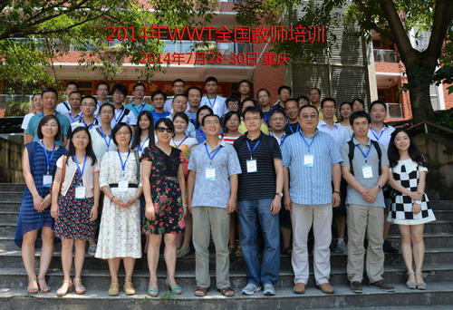 7月29日-30日,由国家天文台、微软研究院、华中师范大学主办,重庆石新路小学协办,重庆梧台科技承办的2014年WWT全国教师培训在国内首座WWT互动式数字天象厅所在地重庆市石新路小学成功举行。来自中国科学技术大学、广州大学、广西大学、四川省内江师范学院、唐山师范学院、北京天文馆、重庆市北培区青少年科技辅导协会、厦门市湖里中学、广东广雅中学、重庆市梁平中学、武汉市张家湾小学、重庆市北碚区状元小学、大庆石油高级中学、广州大学附属中学、涪陵凉塘小学、重庆市北碚区静观镇陡梯完小等大中小学和科普教育单位的30余名教师参加了培训活动。