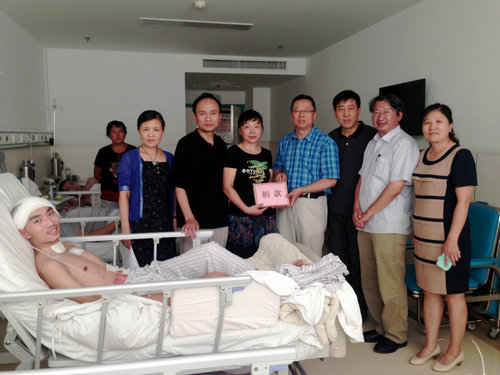 而此次探望,国家天文台领导们更是带来了全台人的问候,继上次10万元慰问金之后,此次又将台内捐款剩余的全部111080元带给了孔啸父母。临别时,孔啸依依不舍地表示,自出事以后,台领导、同事、朋友一直这么无私地支持他关爱他,他无以为报,一定积极治疗,最快的好起来,再次回到他热爱的工作岗位和大伙中间。