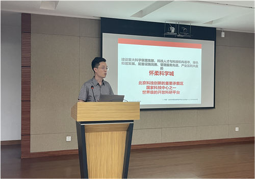 资产处孙士卫同志以《国家天文台怀柔科学城科研办公用房及相关配套设备设施介绍》为专题,介绍了怀柔科学城的设计规划,周边公共服务设施供给情况,最后通过未来办公区域的效果图展示,让大家对未来工作的场景有了更直观的感受。