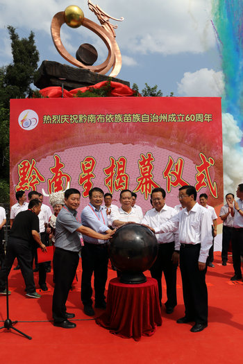 贵州省、黔南州、国家天文台领导为“黔南星”雕塑揭幕