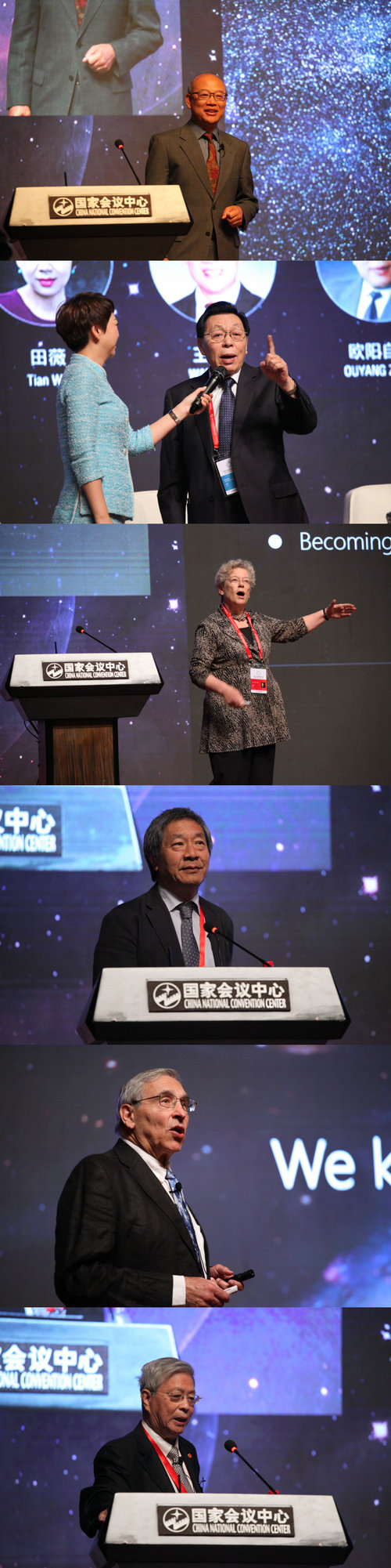小到微观原子,大到无边宇宙,人类对奇妙世界的探索塑造着我们的未来,改变着我们的世界。论坛以中国科学院院士、中国科学院原副院长王恩哥的演讲“从原子到宇宙”为开篇,展示了人类在塑造现代社会的过程中,科技发展及科学素养的关键作用。中国科学院院士、“嫦娥工程”首任首席科学家欧阳自远则从我们身处的地球和近地小天体讲起,探讨了小天体撞击地球的“祸”与“福”。美国科学院院士、美国国家科学奖获得者桑德拉·费伯从天文观测者角度讨论了地球的未来在哪里,让我们对宇宙未来的思索从想象变成了现实。而除了地球以外,宇宙中是否还存在着其他生命?星际移民能否实现?美国知名华裔天文学家林潮关于系外行星探索与地外生命话题的演讲,令现场天文迷的热情达到最高潮。