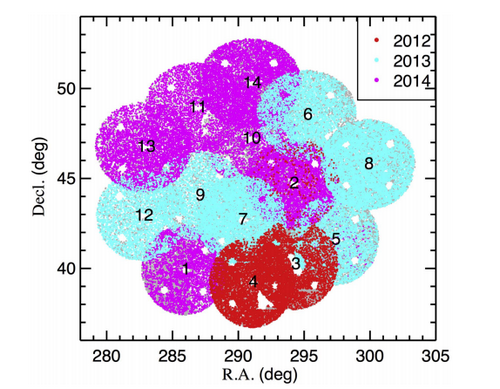 LAMOST-Kepler项目在2012-2014年观测的所有目标源的空间分布图
