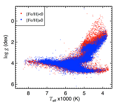 图2显示了校准后的恒星大气参数相应的表面重力和有效温度的分布图。通过对这些恒星参数进行统计分析,任安炳等人发现了106颗贫金属星的候选体,9颗极端贫金属星的候选体和18颗高速星的候选体,并将LAMOST-Kepler项目中校准后的恒星大气参数与开普勒输入星表的参数相比较,分段拟合得出了开普勒星表参数的修正参考公式。LAMOST-Kepler项目中校准的大气参数和视向速度等基本参数将会进一步促进天文学家对开普勒天区恒星的研究。