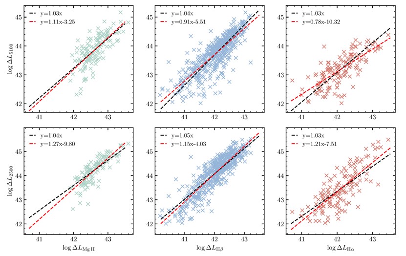 (3)连续谱与宽线协同变化:宽发射线(BELs)光度变化与连续谱光变显著相关,Mg II与Hβ响应程度一致,揭示这种光变可能由光致电离机制主导。