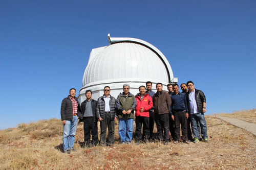 中乌天文人员在Maidanak天文台1米蔡司望远镜前合影