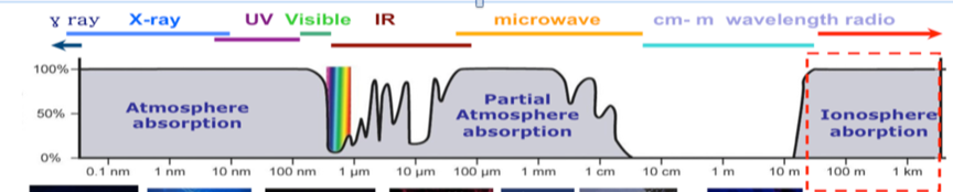 然而,还有一个波段迄今仍几乎空白,这就是频率为30MHz以下的超长波波段。在无线电通讯中,0.3-30MHz间被划分为高频HF,中频MF,使用收音机收听调幅(AM)广播的话,这也被称为短波和中波。不过在天文上这一频段算是极低的频率,频率越低,波长越长,因此我们称其为超长波。其实,人类首次观测到天体射电信号就是上世纪30年代央斯基(Karl Jansky)在这一频段测试通讯噪声时意外发现的。但地球高空大气有电离层,会吸收低频电波,没被吸收的部分也受到强烈折射,使信号随着电离层的湍流剧烈变化而难以观测。再加上自无线电发明以来人们就利用这些较低的频率开展了广播、通讯等业务,有许多人工干扰电波,因此在这一频道进行天文观测就非常困难。所以,绝大部分天文观测都是在更高的频率上进行的,这一频段反而留下了一片空白。