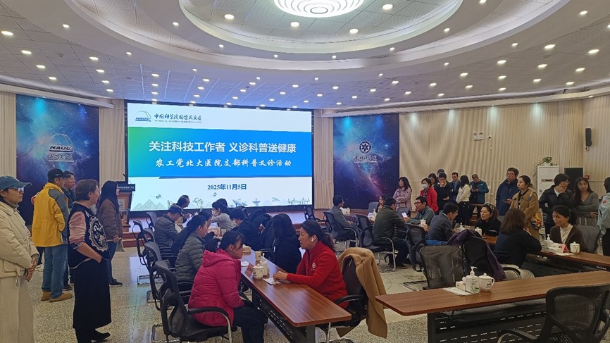 11月5日,农工党中国科学院国家天文台支部邀请北京大学第一医院农工党员专家团队进行“关注科技工作者,义诊科普送健康” 活动。国家天文台纪委书记欧云,北大医学部党委统战部副部长陈子豪,农工党中国科学院委员会副主委孔宏智,农工党北大医院支部主委熊辉,农工党国家天文台支部主委张昊彤出席活动。农工党北大医院支部、国家天文台支部近40名农工党员以及国家天文台百余名职工参加了科普报告和义诊活动。