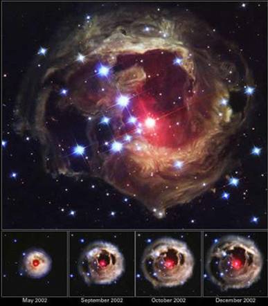 麒麟座V838于2002年爆发,研究表明此类恒星的爆发是双星共包层事件的结果。
