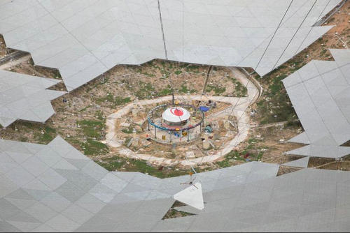 正在贵州黔南州建设的世界最大单口径射电望远镜——500米口径球面射电望远镜(FAST)目前正在进行反射面面板安装,4400块边长约11米的三角形面板安装已经完成近三成,预计明年4月前后安装完毕。新华社记者金立旺摄