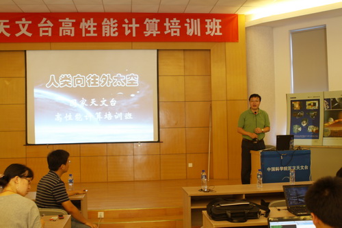 国家天文台副台长郝晋新在培训班上致开幕词,他首先欢迎大家踊跃报名参加本次培训班,指出天文学研究领域的高性能计算应用已经开展了多年,并取得了一定的科研成果,希望今后天文领域高性能计算的研究能更好更深入地发展和进行下去,普及和推广更有深度的相关培训和基础研究。