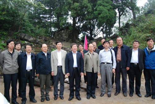 10月9日,曹健林副部长冒雨实地视察了FAST工程贵州黔南平塘县克度镇大窝凼FAST工程台址。
