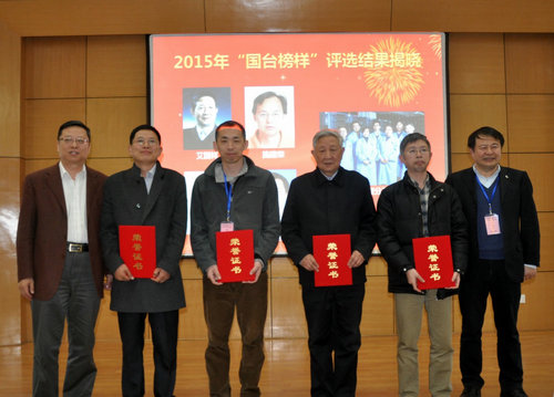 会上,还同时表彰了被评为2015年度“国台榜样”的个人和集体,艾国祥、施建荣、陈颖为和苟利军4位同志被评为“国台榜样”人物,嫦娥工程地面应用系统的数据管理分系统和通信与网络分系统被评为“国台榜样”集体。党委书记赵刚宣读了表彰决定,希望受表彰的个人和集体能够珍惜荣誉,再接再厉,把表彰作为新的起点;希望全台职工向“国台榜样”学习,求真务实,锐意进取,为建设世界一流的国家天文台做出新的贡献!