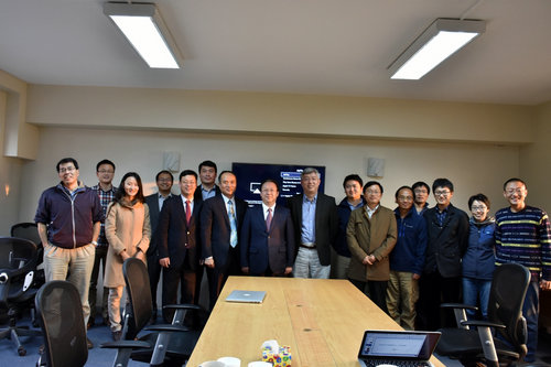 随后,谭铁牛一行访问了智利大学,与智方讨论了南美天文中心的运行和今后的发展方向。视察了中科院南美天文中心,听取了中心主任王仲关于中心的整体情况汇报和朱磊、于立鑫博士关于中智天文大数据中心的详细汇报。谭院长高度肯定了中心三年来的快速发展和取得的成绩,向中心代表国家天文台取得在智国际组织地位表示祝贺,并指示中心应放眼未来,长足发展。谭院长还亲切慰问了在智访问学者和工作人员,与他们进行了座谈,并鼓励大家积极为中心的发展建言献策。