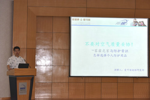 6月6日,邀请爱可丽南核集团研发部负责人给大家做了一堂——不要对空气质量妥协的报告!从雾霾的危害,如何防护及怎样选择个人防护用品开始介绍,使大家对大气污染以及雾霾如何危害健康有了更深层次的了解,也深刻地认识到,如果人类继续急功近利,不讲可持续发展终将自食恶果。