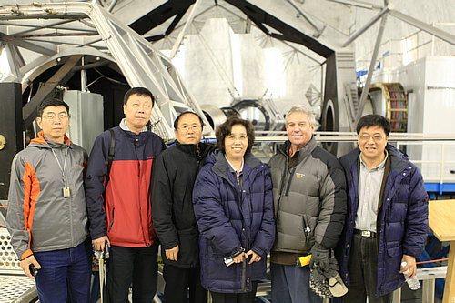 分别于1993年和1996年相继竣工的目前世界上口径最大的两台光学-红外望远镜,因其先进的子镜拼接共面主动光学技术,激光导星自适应光学技术,加之配备多功能科学终端设备,在探测宇宙遥远星系、揭示银河系中心黑洞动力学,搜寻地外行星系统等前沿天文科学领域,做出了诸多重大科学发现,其科学产出效率及影响享誉世界。杨祖佑教授指出,包括中国在内的TMT国际合作项目已经启动建设准备工作,计划2014年在莫纳克亚山顶正式开工,建设工期为7年。从目前国际顶级凯克望远镜取得的成就中可以预见,不久的将来,国际首座30米级望远镜的强大威力。这一切给代表团的实地访问留下了深刻的影响。