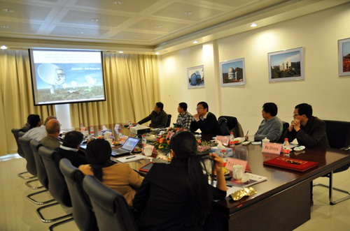 在接待会上,赵刚研究员向客人介绍了国家天文台总体构成及科研进展情况;兴隆观测站首席科学家赵永恒做了郭守敬望远镜(LAMOST)建设、运行、先导巡天及数据处理等情况的报告。南非SKA项目主管Bernard Lewis Fanaroff博士,也就南非近年来的天文发展成就做了报告。会上,双方在友好的气氛中进行了广泛交流,同时还就今后双方开展合作的可行性做了积极有益地探讨。会后客人们参观了郭守敬望远镜,并听取了赵永恒对望远镜的介绍。兴隆观测站总工程师姜晓军、站长武振宇一同参加了接待活动。