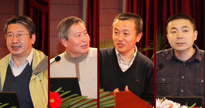 从左至右,实验室副主任赵永恒、周旭、邓李才和光学天文研究部总工程师姜晓军作相关报告