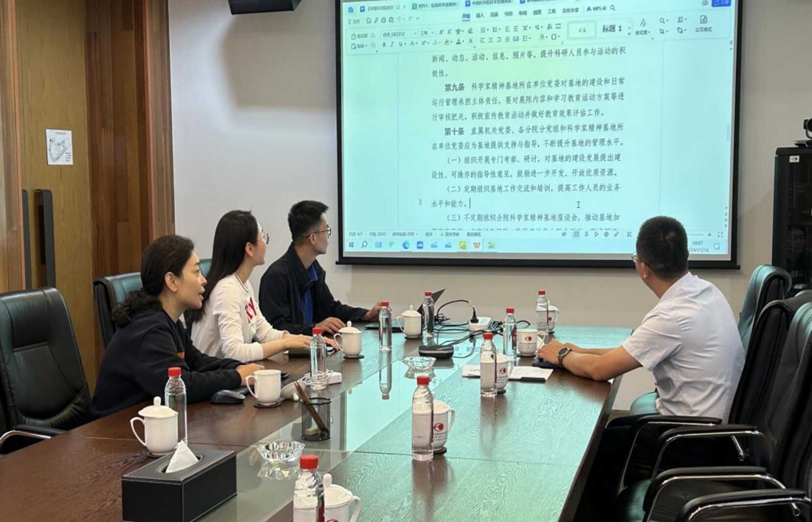 朱明传达了院直属机关党委关于科学家精神基地的最新管理办法,并与与会人员围绕工作实际,对照管理办法和标准要求,围绕基地未来工作提出了改善方向和建议。