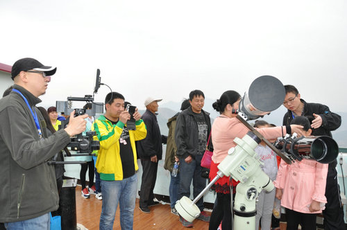 在参观现场,讲解人员与参观者的互动场面非常热烈,公众对天文仪器有浓厚的兴趣。在科普展厅,人们看到了光学天文观测设备的发展历史,从感光底片时代至郭守敬望远镜的发展过程。展厅的大屏幕上循环播放着由凤凰网制作的介绍兴隆基地天文观测一线工作的纪录片《发现坚守的力量》。尽管天公不作美,没能观测太阳,公众还是饶有兴致地体验操作科普望远镜。《走进国家天文台》纪录片摄制组在开放日活动各个现场进行取景摄制。