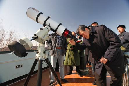 4月13日,交通部副部长陆东福一行考察位于河北兴隆的中科院国家天文台兴隆观测基地。中国科学院副院长阴和俊等陪同考察。