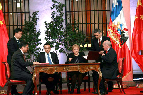 5月25日,在国务院总理李克强和智利总统巴切莱特的共同见证下,中科院国家天文台副台长赵刚、华为智利分公司总经理秦华以及圣玛利亚理工大学校长福恩扎利达(Darcy Fuenzalida)代表三方在智利圣地亚哥总统府签署共建中智天文大数据中心的合作协议。