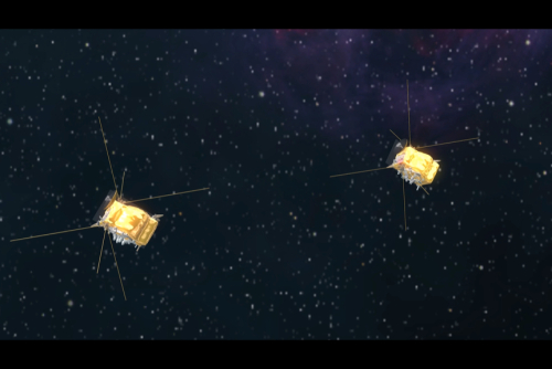 不过,这一米长的天线远远短于观测的波长(10-300米),因此方向性很弱。如何能够提高分辨率,确定电波射来的方向呢?解决的原理有点类似人类的耳朵:如果我们塞住一只耳朵而只用一只耳朵听的话,就无法区分声音传来的方向,但如果用两只耳朵的话就比较容易判断方向,这是因为声波传到两只耳朵的时间稍有不同,我们的大脑可以自动判别出来。同样的,射电天文上使用干涉仪,将两个单元受到的信号做互相关,据此求出信号的到达时间差,从而定出来波的方向。如果使用多台天线构成阵列,可以得到天空的图像。这就是综合孔径成像方法。这一方法早已在射电天文上使用。不过,虽然地面上早就有了干涉阵,但在空间中两颗卫星的相对距离和方位不断变化,甚至两星上的时间和频率基准都不相同,因此要做到空间的干涉观测并不容易。迄今为止,还没有空间两星相互干涉观测的实例,只有日本的HALCA和俄罗斯的Spektr-R(RadioAstron)进行了空间与地面之间的天文干涉观测。