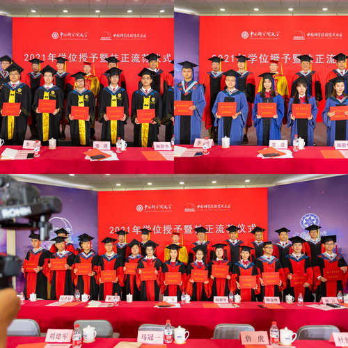庄严隆重的音乐声响起,典礼正式进入学位授予仪式阶段,导师们在主席台上依次为毕业生颁发学位证书、扶正流苏。刘继峰副台长表示:“你们作为天文人,应当站在时代的前端,放眼世界与未来,肩负起振兴国家的使命,希望你们若干年后回首,能有比我们这代人更加精彩的故事。”