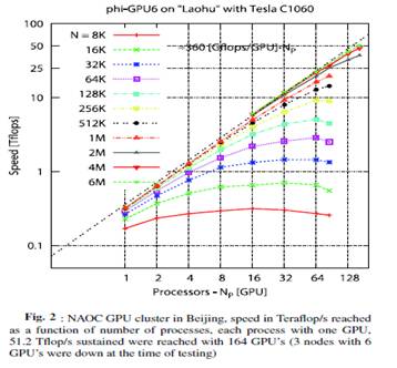9月20日,随着GPU集群再次开放使用,标志着国家天文台GPU集群的升级改造工作正式完成。经过多天紧张的施工调试,老虎集群的59个节点全部装上了新购置的K20卡。同时,其它26个节点的GPU卡增加至3块,并将全部驱动升级为CUDA5.0新版本。升级后GPU集群的理论单精度总性能达280T FLOPS。经过对集群性能进行近一个月的测试,升级工作完全达到预期效果(升级前后性能对比如下图1、2所示)。现在一块GPU卡的加速性能是原来单卡速度的4倍,而单卡的能耗更低,这将进一步促进我台绿色集群、绿色机房的建设,促进计算天文学的发展。