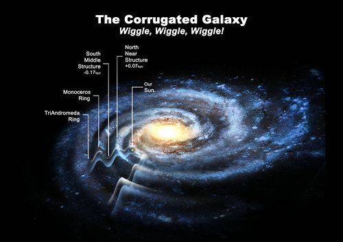 由国家天文台恒星与恒星系统研究团组副研究员徐岩、刘超和邓李才研究员,与美国仁斯勒理工大学教授Heidi Newberg,博士后Jeff Carlin,上海天文台研究生李静,英国牛津大学Ralph Schonrich博士以及美国费米实验室Brian Yanny教授组成的团队,利用SDSS的测光和光谱数据研究银河系盘的结果表明,银河系的盘存在波动结构并且银河系盘的尺寸可能比我们经典认为的大一倍。文章发表在国际天文学期刊《天体物理学报》上(ApJ,2015,801,105)。