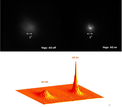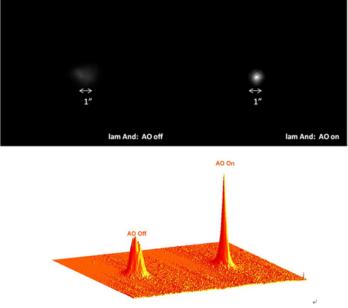 通过选择不同星等的目标测试HPAO的工作性能,并用科学级红外相机在H波段,以10s长曝光记录了观测数据。HPAO对0等的织女星实现了接近衍射极限的成像校正; HPAO对3.8等目标λ And的校正也明显改善了像质,校正后星斑图像能量收敛于艾利斑区域。HPAO的观测星等目前受限于2.16米望远镜折轴焦点端的严重通光损耗,以及HPAO采用的普通光学元件。课题组计划下一步将HPAO改造为安装在望远镜卡焦端,并针对通光效率采用优化设计的光学元件,有望将观测目标拓展至暗于8等星,从而能够真正为科学观测服务。针对2.16米望远镜的使用情况,HPAO可以用于褐矮星直接成像探测,系外行星间接探测结果的验证观测,太阳系内目标观测以及其他有高分辨成像需求的科学研究。