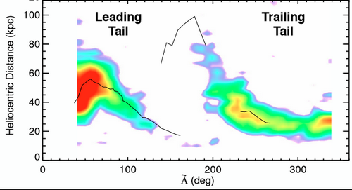 图为李静等人利用LAMOST M巨星探测到的人马星流在空间的分布。