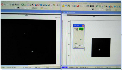 2016821日,1米望远镜首次跟踪捕获墨子号 (左图为粗跟踪视场(20′),右图为精跟踪视场(1′))