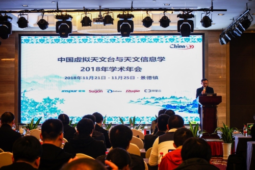 中国虚拟天文台与天文信息学2018年学术年会于11月21日至25日在江西景德镇召开。国家天文台党委书记、副台长赵刚,国家科技基础条件平台中心副主任王瑞丹,中国信息协会副会长、中科院网信办特邀顾问吴钰,国家天文台副台长郝晋新,景德镇学院副校长胡继平等领导出席。赵刚、王瑞丹、胡继平在会议开幕式上致辞。来自各天文台站、高等院校、科研机构、科技馆、公司企业、社会团体等50多个单位170余名代表参加了会议。年会自2001年起已经成功举办17届。此外,本次年会是第一次同时有来自台湾、香港、澳门和大陆,即两岸四地天文科研及科普工作者参加的会议。本届学术年会由国家天文台主办,景德镇学院承办。