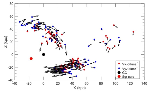 人马座星流是人马座矮星系受到银河系强大的潮汐作用力瓦解而留下的痕迹。由于这次潮汐瓦解事件是最近几十亿年刚刚发生的,因此它的结构在空间中异常显著,就像一条炫舞九天的赤焰飞龙,由南向北跨过整个银河系。获得人马座星流详细的三位空间轨道分布,能够帮助我们有效的还原银河系和矮星吸积并合历史,对银河系的引力势和恒星形成历史能给出强有力的约束,是完善银河系形成和演化模型的关键之一。