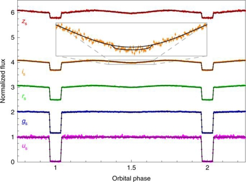 近日,由国家天文台兴隆观测基地任娟娟博士参与的国际研究团队,发现了首颗存在掩食现象的白矮星+冷亚矮星双星(图1),并借助该双星首次同时准确测量出了冷亚矮星的质量和半径。该研究工作由来自西班牙加泰罗尼亚理工大学(UPC)、加泰罗尼亚太空研究所(IEEC)、英国谢菲尔德大学(University of Sheffield)、中国科学院国家天文台、英国华威大学(University of Warwick)等单位的科研人员共同合作完成。相应成果于2019年4月8日在线发表在国际科学期刊《自然·天文》(Nature Astronomy)上。