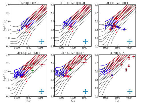 过去的研究证实富锂巨星在巨星中的比例约为1%,如此低的比例给富锂巨星的研究带来了阻碍,在过去三十多年的研究中,被高分辨率光谱确认的富锂巨星一共只有 200 多颗。光谱巡天为搜寻此类丰度异常星提供了优越的条件,基于 LAMOST DR4数据,研究人员对恒星光谱6708埃处的锂线进行等值宽度测量从而筛选出富锂巨星候选体,结合美国阿帕奇天文台(APO)3.5米望远镜、美国自动行星搜寻者望远镜(APF)2.4米望远镜、日本昴星团望远镜(Subaru)、我国丽江 2.4米望远镜和 1.8米望远镜的高分辨率光谱的后随观测确认了44颗富锂巨星。研究人员对该样本的系统性分析结果显示:富锂巨星的性质更倾向于在恒星自身内部通过核合成形成富锂,而且它们在赫罗图上主要聚集在渐近巨星分支(AGB)、红团簇(Red Clump)、红巨星分支驼峰 (RGB Bump) 这三个演化阶段。这些发现对巨星的富锂形成机制提供了非常重要的观测证据,同时为研究富锂的形成理论给出了进一步的限制。