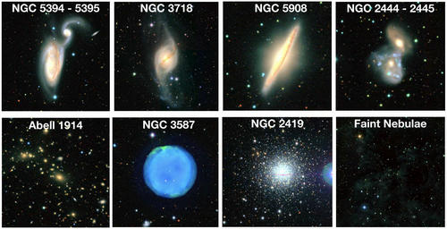 图1. BASS巡天观测的天体真彩图,由3个波段合成(红色z波段,绿色r波段,蓝色g波段)。