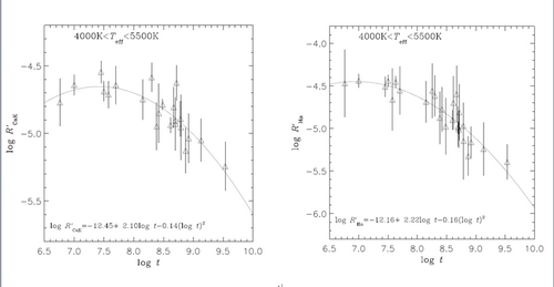 通常来看,青年人比老年人有活力,类似于人类,年轻恒星比年老恒星具有较强的活动性,因此活动性和恒星年龄具有较强的相关性。