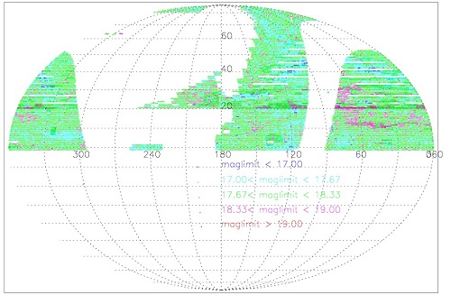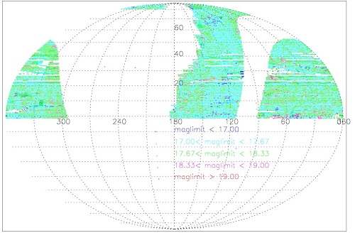 图3. SAGE vSAGE波段的巡天深度分布(信噪比S/N=100)