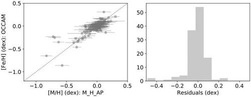 该工作使用了APOGEE巡天项目的恒星参数星表和BT-Settl恒星大气模型,采用章博博士、刘超研究员等人提出的SLAM算法(Zhang 等 2020)精确测量了约30万颗LAMOST观测的M矮星的有效温度和金属丰度。对于信噪比高于50的恒星,该工作给出的有效温度精度约50K,金属丰度约0.12dex。经与其他不同巡天项目的恒星参数进行对比,发现具有很好的一致性。此外,金属丰度的准确度也在疏散星团、宽距双星样本中得到了非常好的验证。该工作为研究银河系及多星族的演化、系外行星的搜索以及初始质量函数等领域的研究提供了重要的大样本。