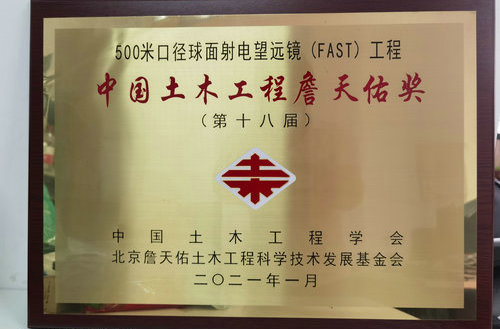 9月27日,作为我国土木工程领域科技创新的最高荣誉奖,第十八届中国土木工程詹天佑奖正式颁发,500米口径球面射电望远镜(FAST)工程获此殊荣。