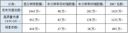 DR7(v2.0版本)国际发布数据量信息如下表:
