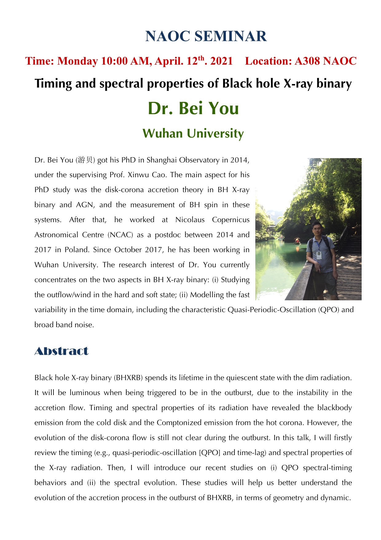 [seminar]Bei You: Timing and spectral properties of Black hole X-ray binary