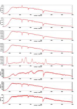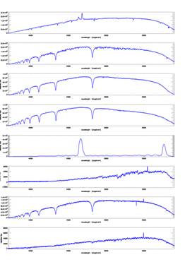 LAMOST获得的恒星光谱(上为蓝区光谱、下为红区光谱,未定标)