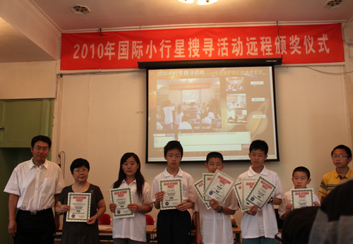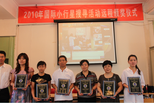 6月27日上午,由中国“动手天文”教学组织(简称中国HOU)和北京远程教育专业委员会共同举办的“2010国际小行星搜寻活动”远程颁奖仪式在北京教育网络和信息中心会议室举行。